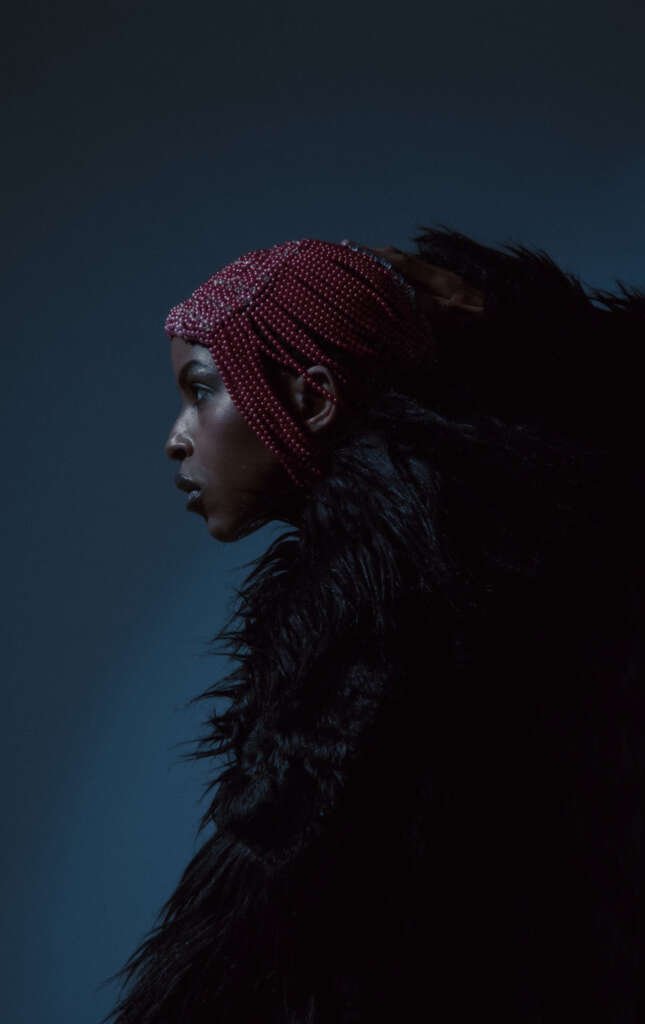 I think Vivienne Westwood, with her inspired collections and her activism, would have been intrigued by Oyinbokure’s photographs. She frequently quoted the philosopher Bertrand Russell — “Orthodoxy is the grave of intelligence.”Compare Vivienne’s Orange Sheepskin Short-Sleeved Bolero from the Erotic Zones Collection (Spring/Summer 1995) to Oyinbokure’s A.I.-generated shaggy body-enveloping creations!