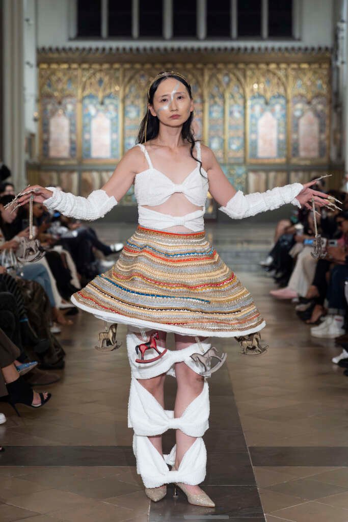 Environmental storytelling took centre stage with Satomi, el beso. Inspired by Japanese folklore and marine conservation, Satomi Takakura’s Dragon Palace of the Indian Ocean felt ethereal and urgent at the same time. The collection gently reminded the audience of the fragile relationship between humanity and the natural world, proving that fashion can be both poetic and political.
